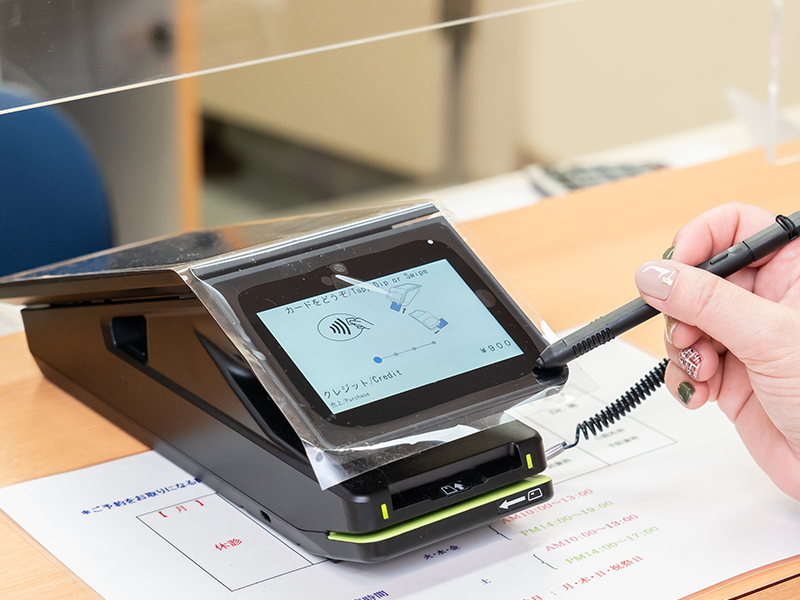 お支払いの際は、受付窓口にて患者様側でカード操作・暗証番号入力・サインなどすべて完結できるシステムを導入しています。ご希望に合わせて、お支払方法をお選びください。